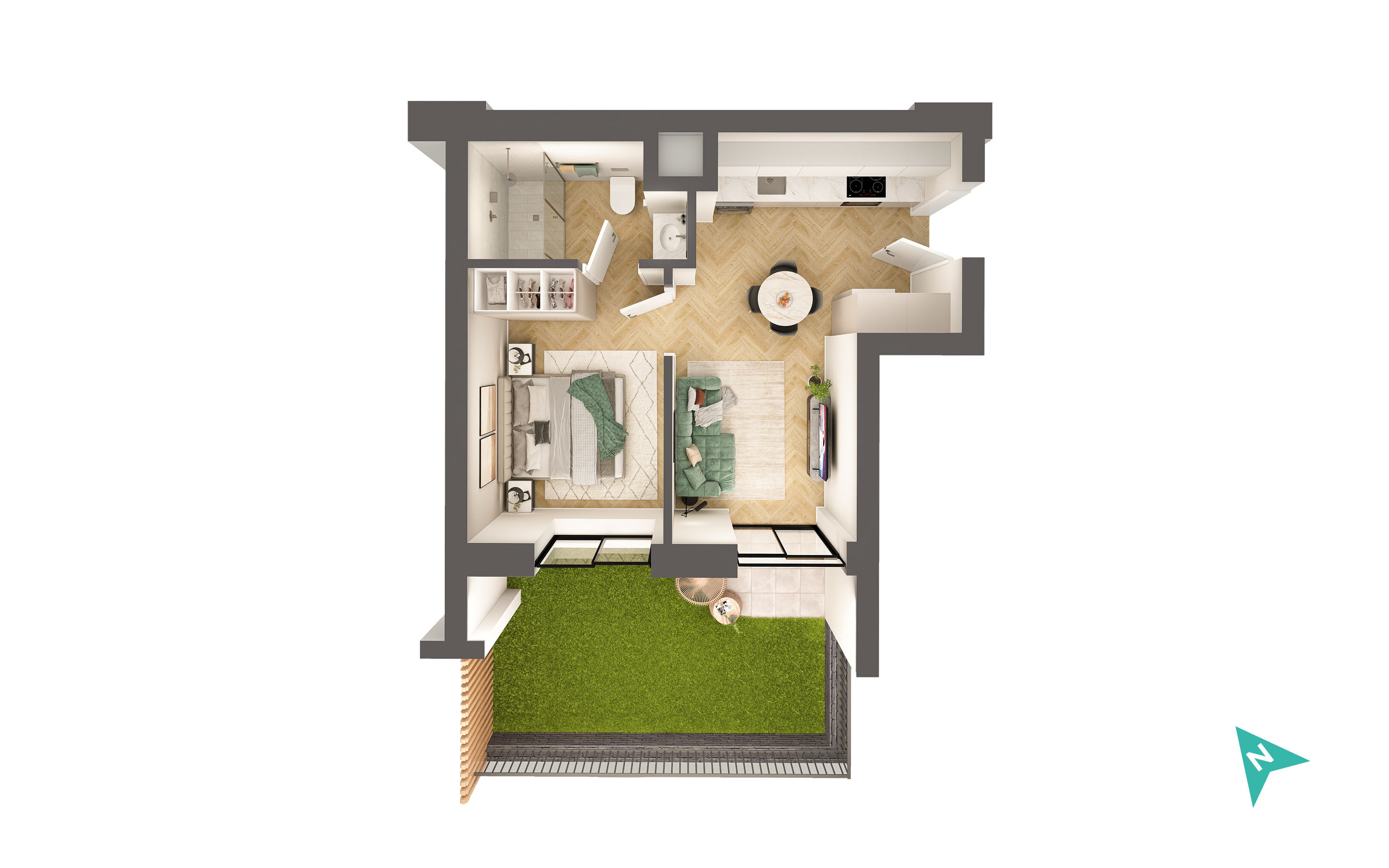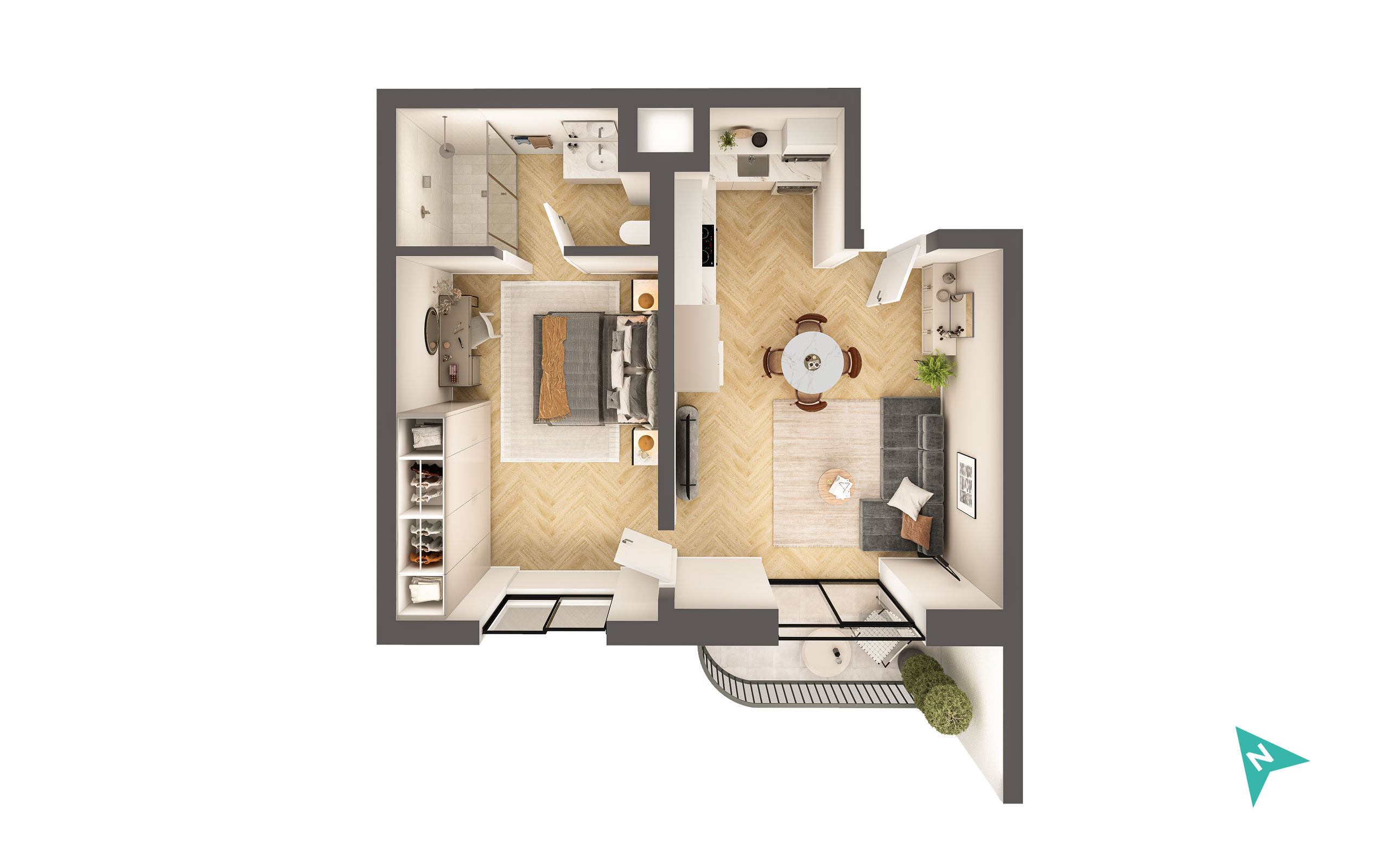 604 | SOLD | 1 - bed | Park | 45 m2 | 6 m2 | 51 m2 | R3 617 |