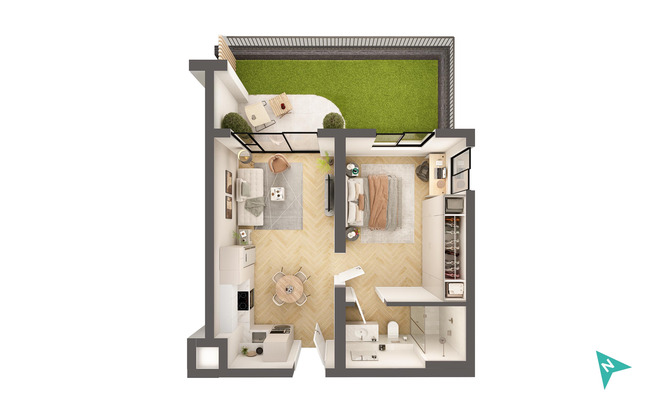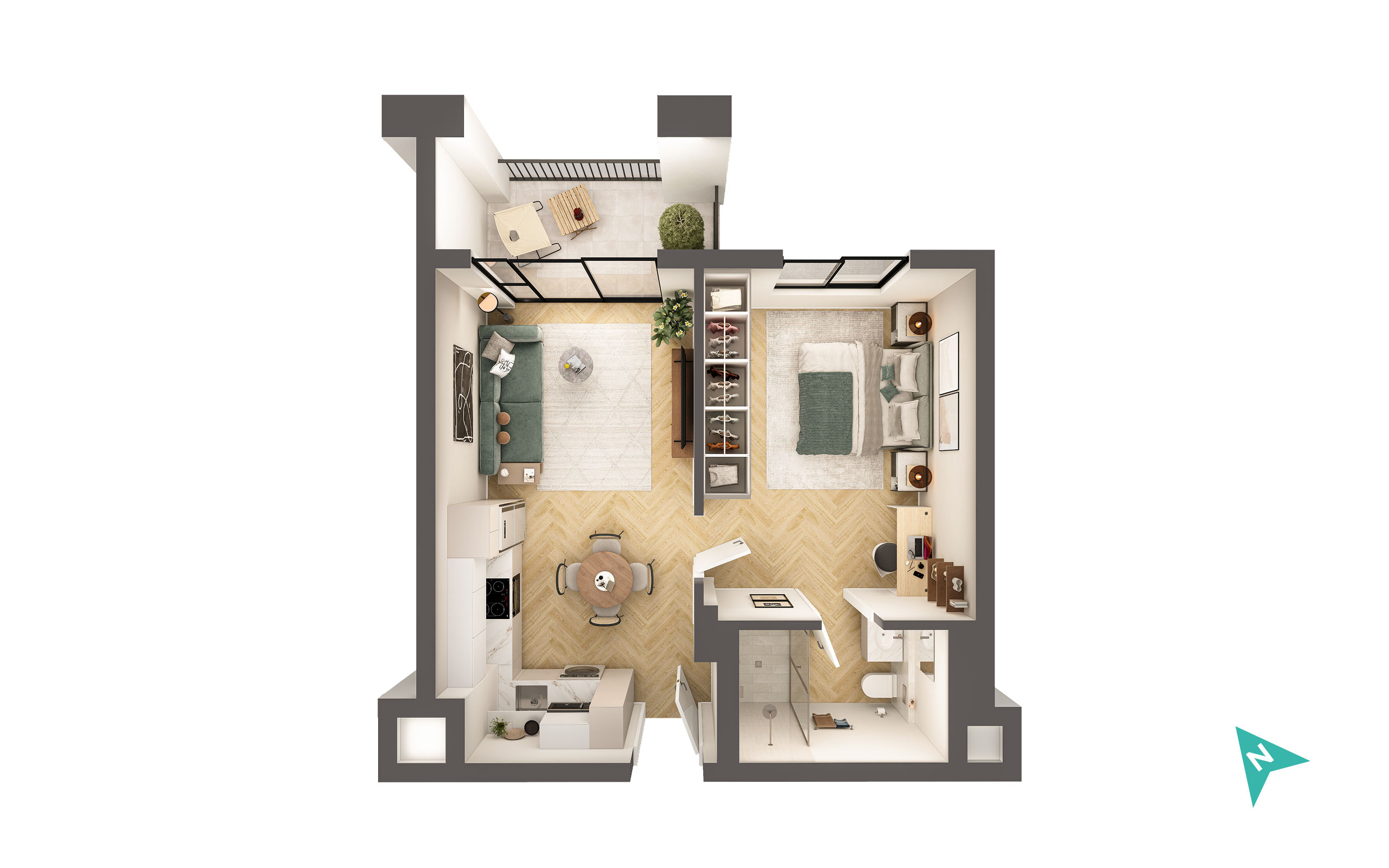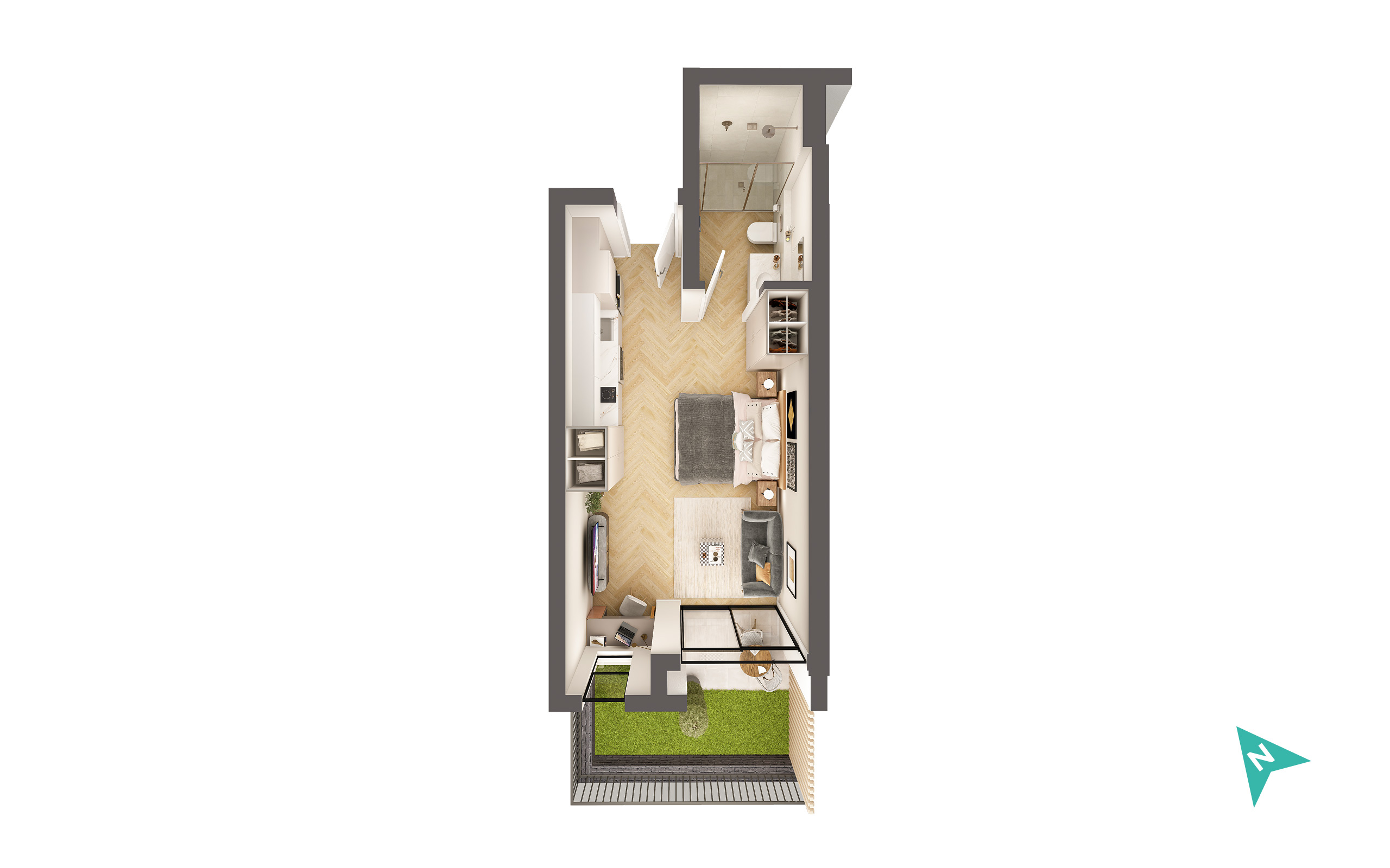 310 | SOLD | 1 - bed | Park | 45 m2 | 6 m2 | 51 m2 | R3 617 |