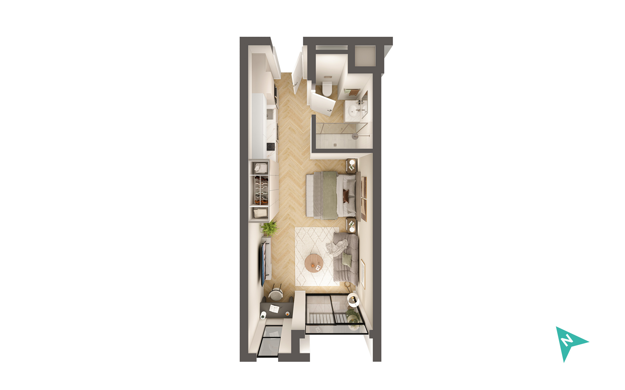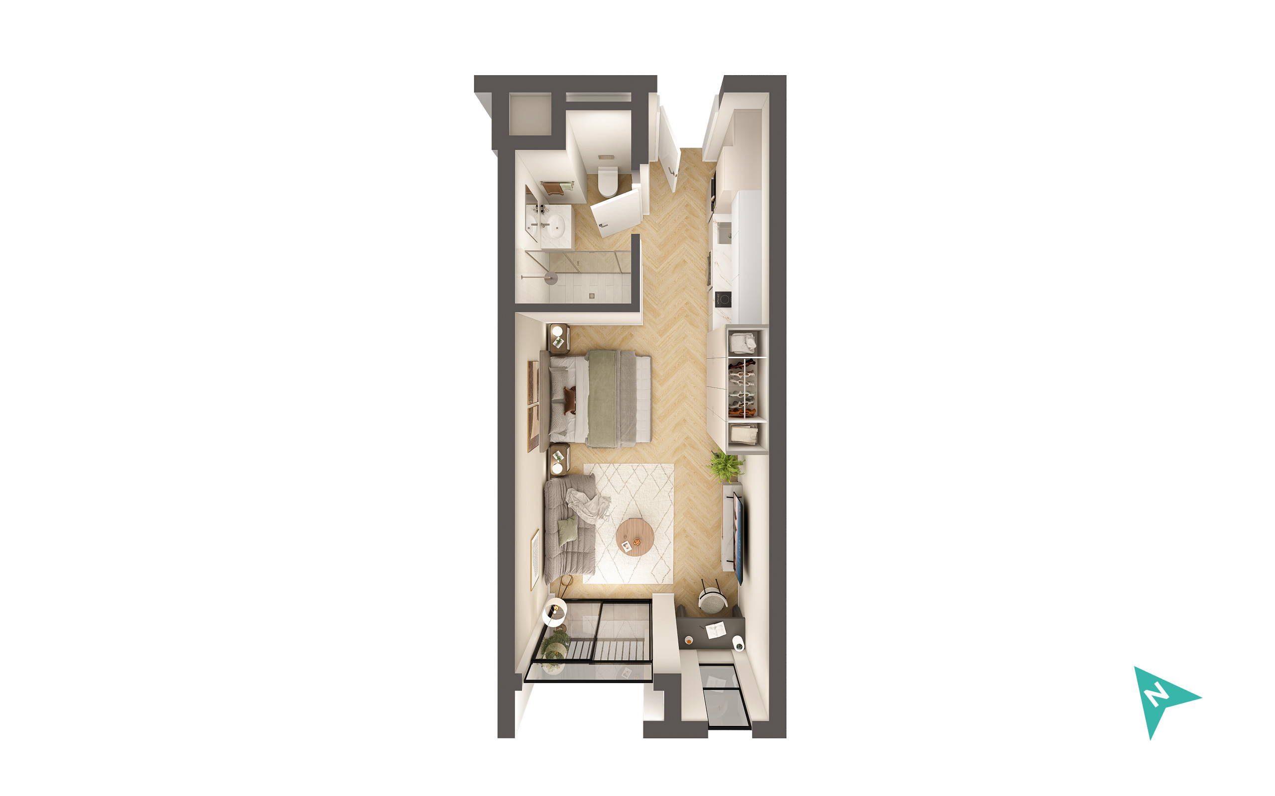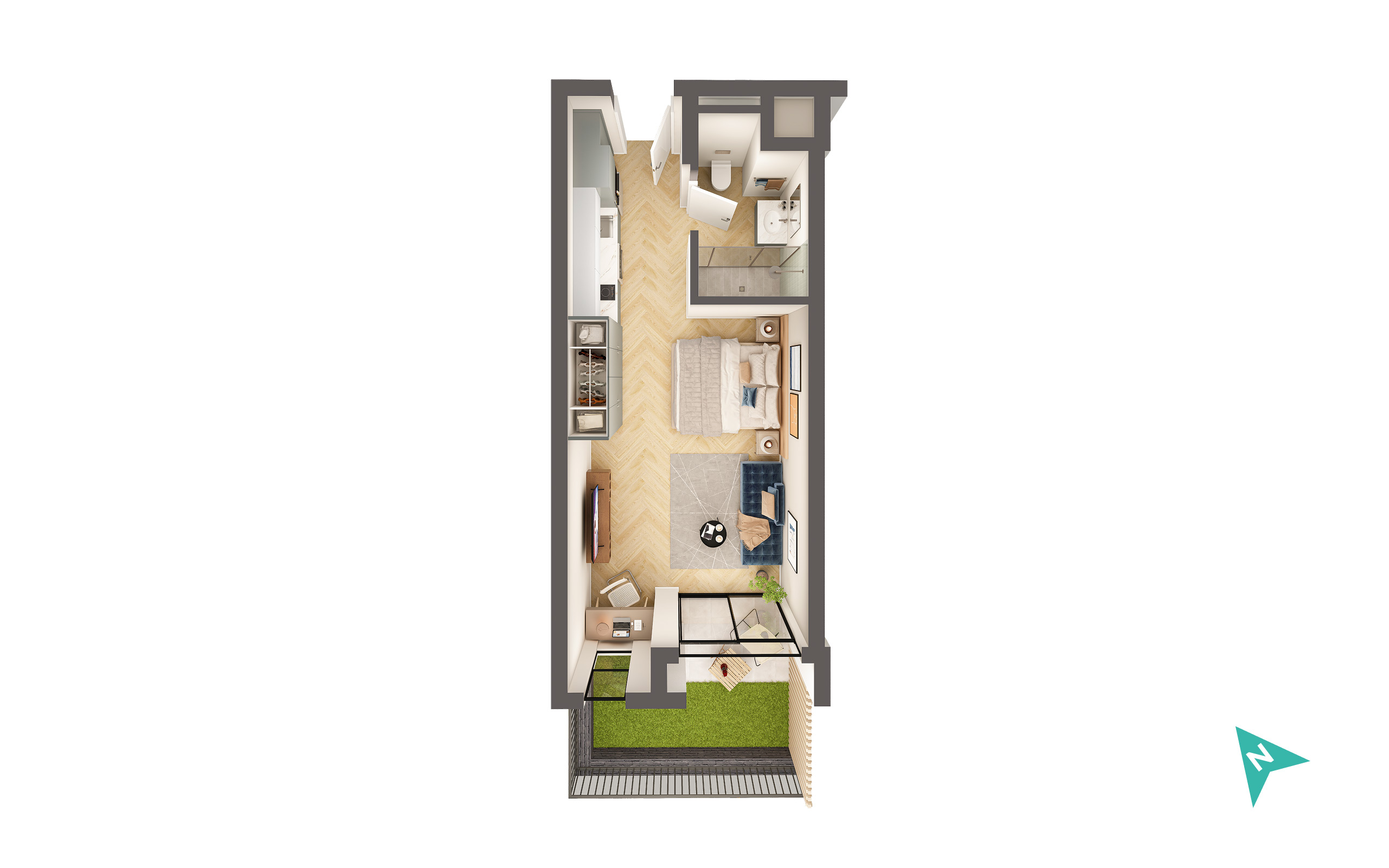 310 | SOLD | 1 - bed | Park | 45 m2 | 6 m2 | 51 m2 | R3 617 |