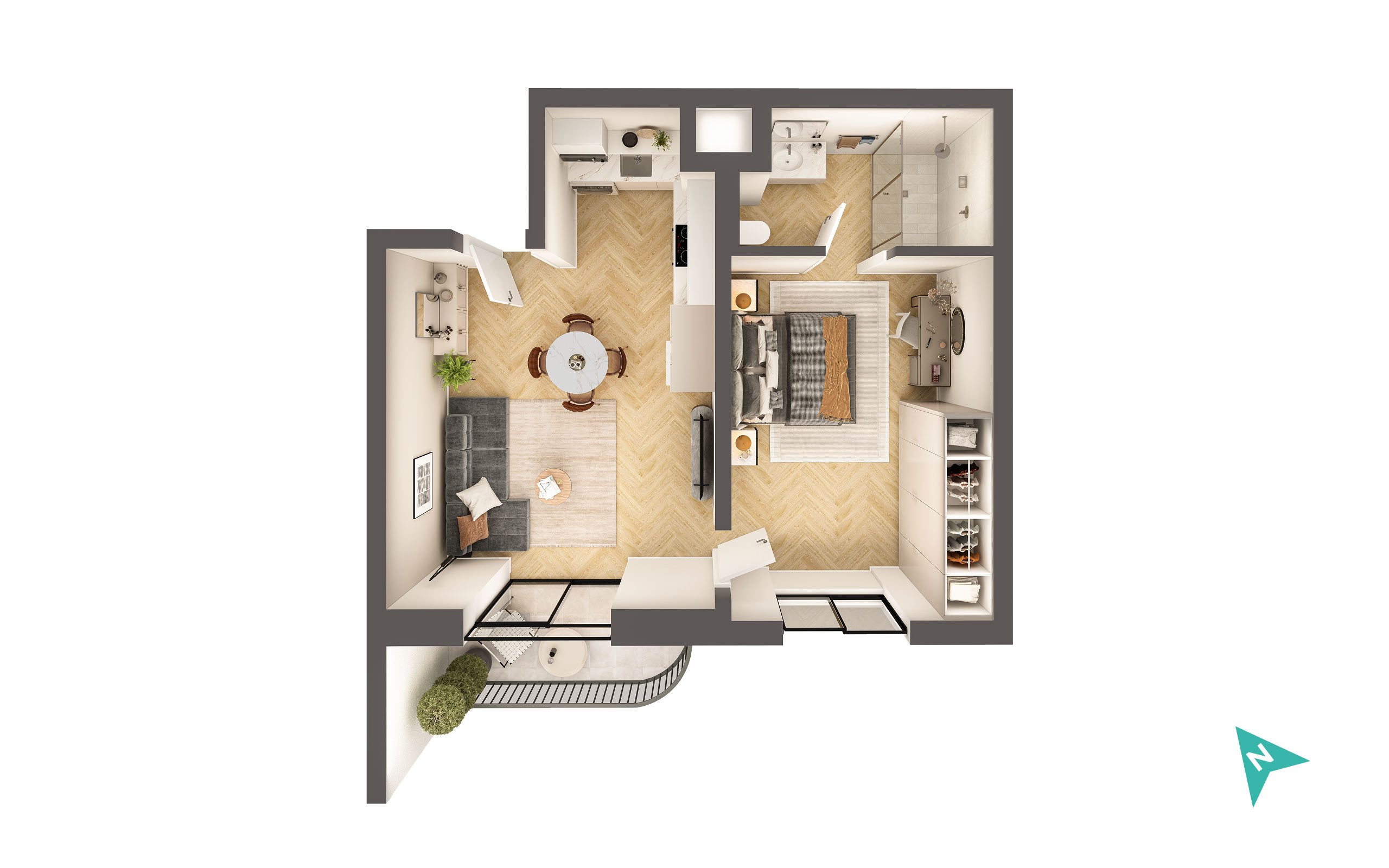 504 | SOLD | 1 - bed | Park | 45 m2 | 6 m2 | 51 m2 | R3 617 |