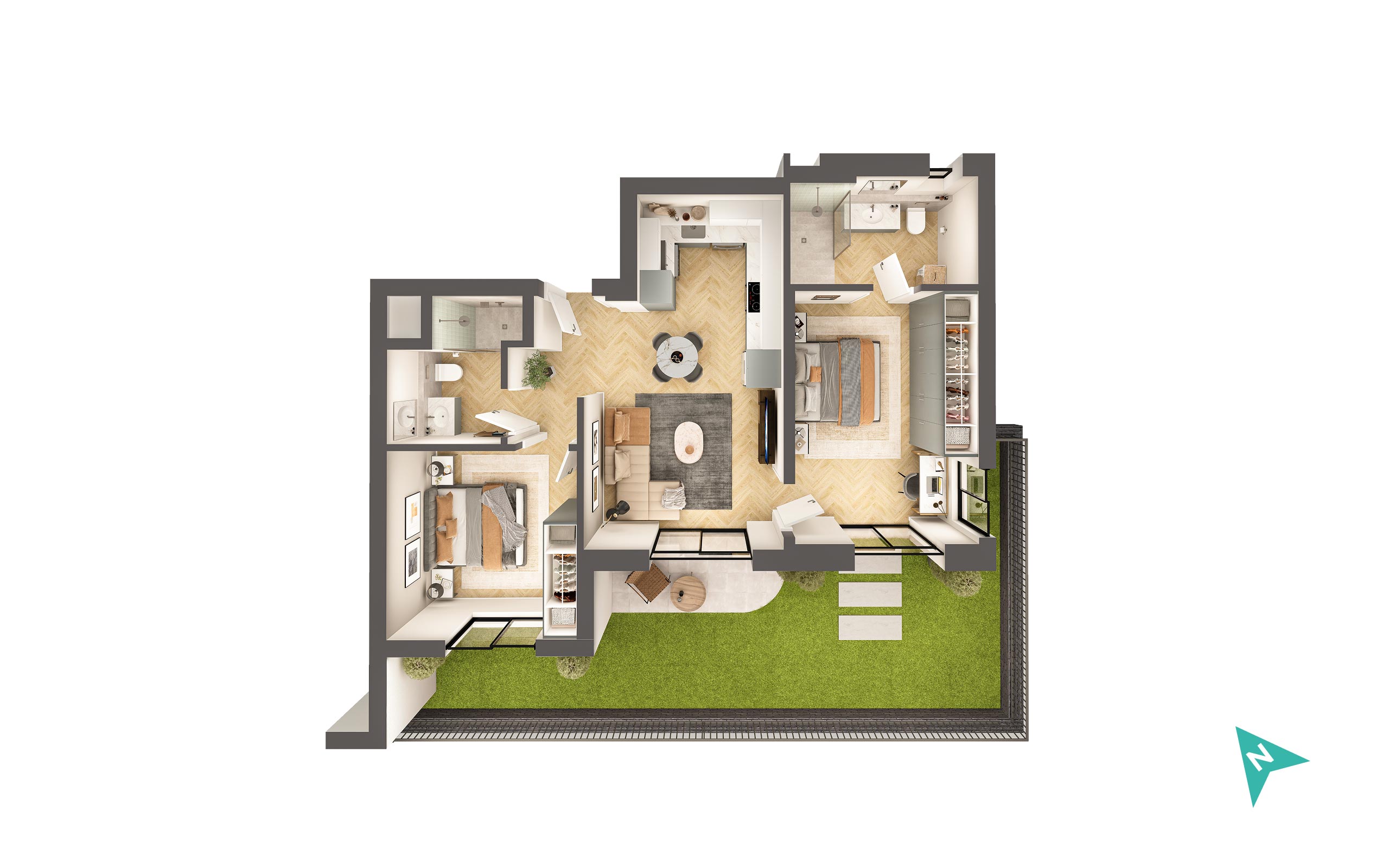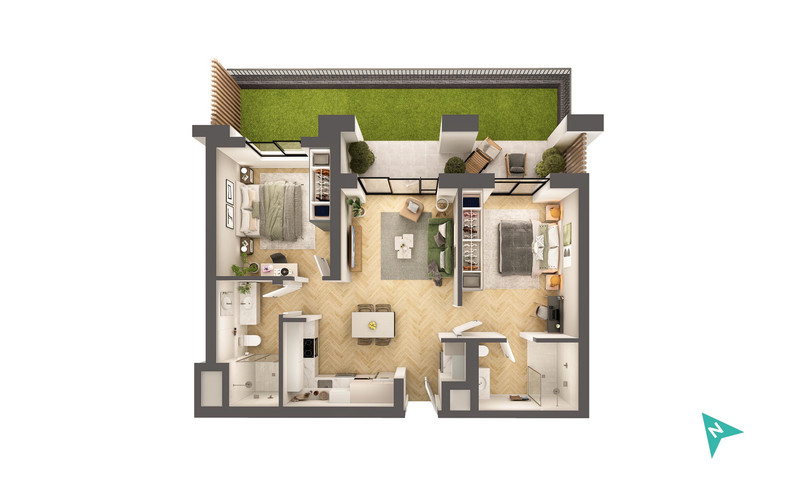 107 | SOLD | 2 - bed | Park | 72 m2 | 32 m2 | 104 m2 | R6 302 |