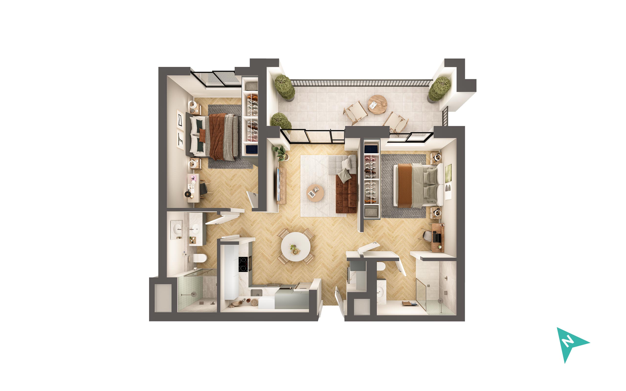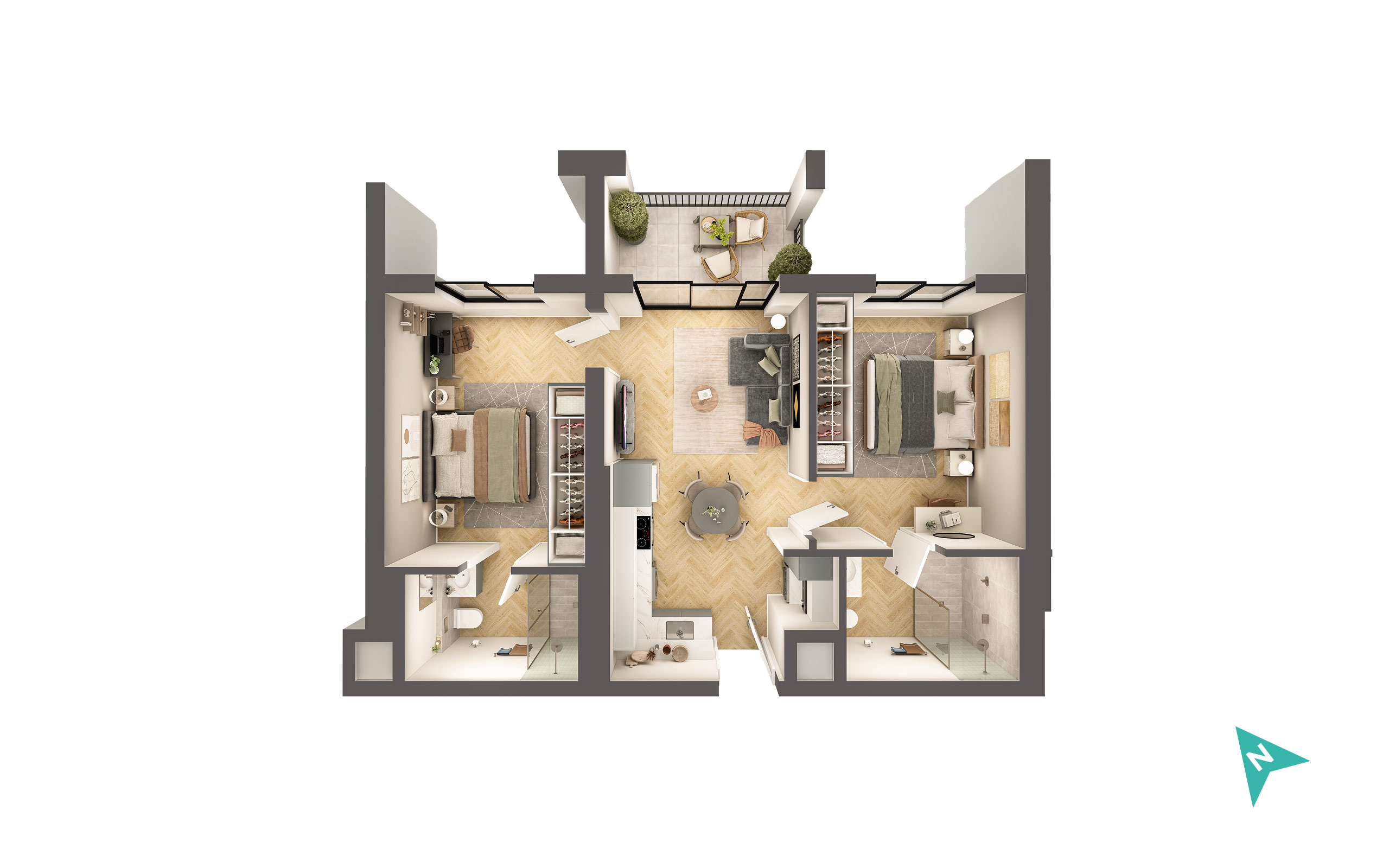 704 | SOLD | 1 - bed | Park | 45 m2 | 6 m2 | 51 m2 | R3 637 |