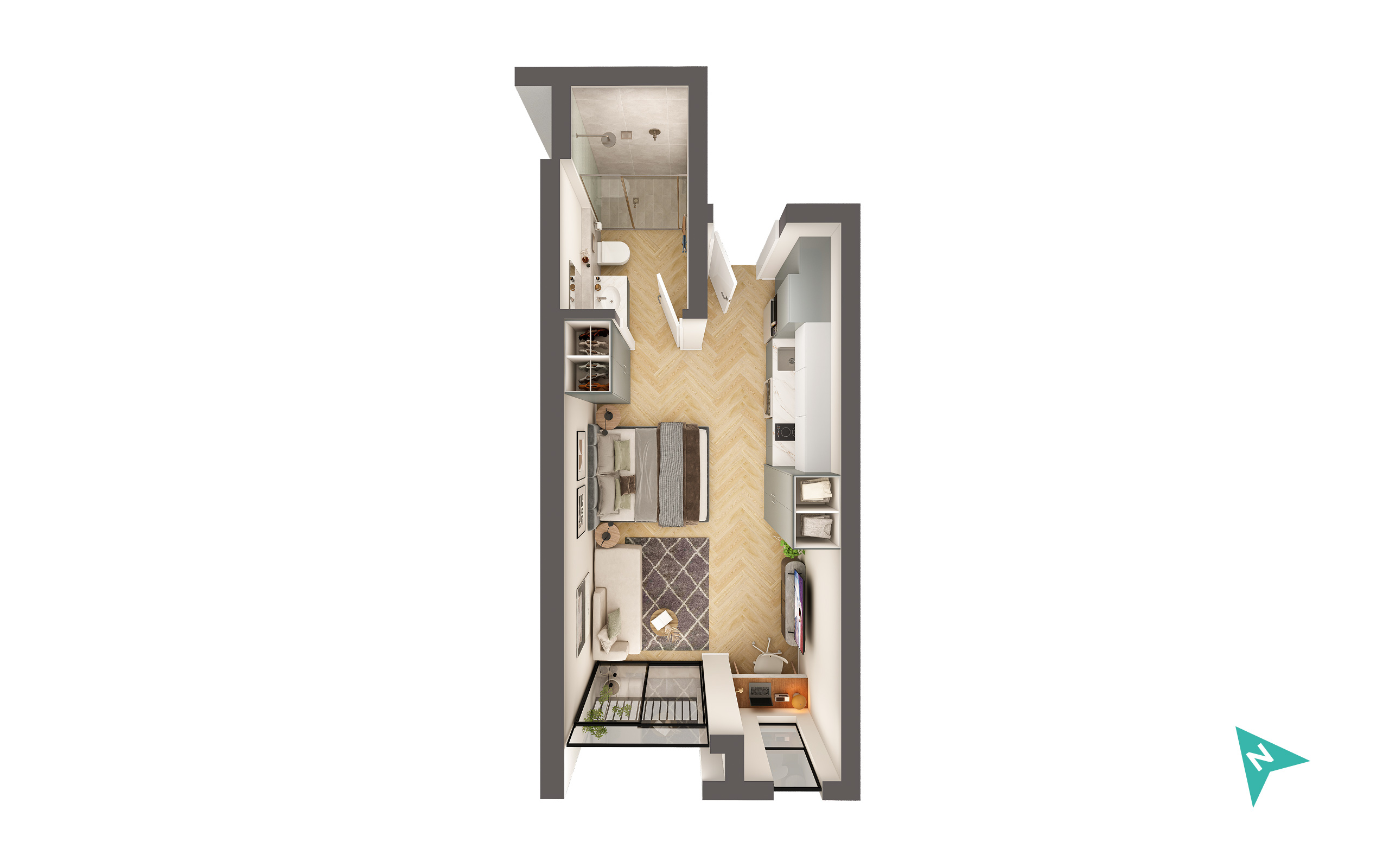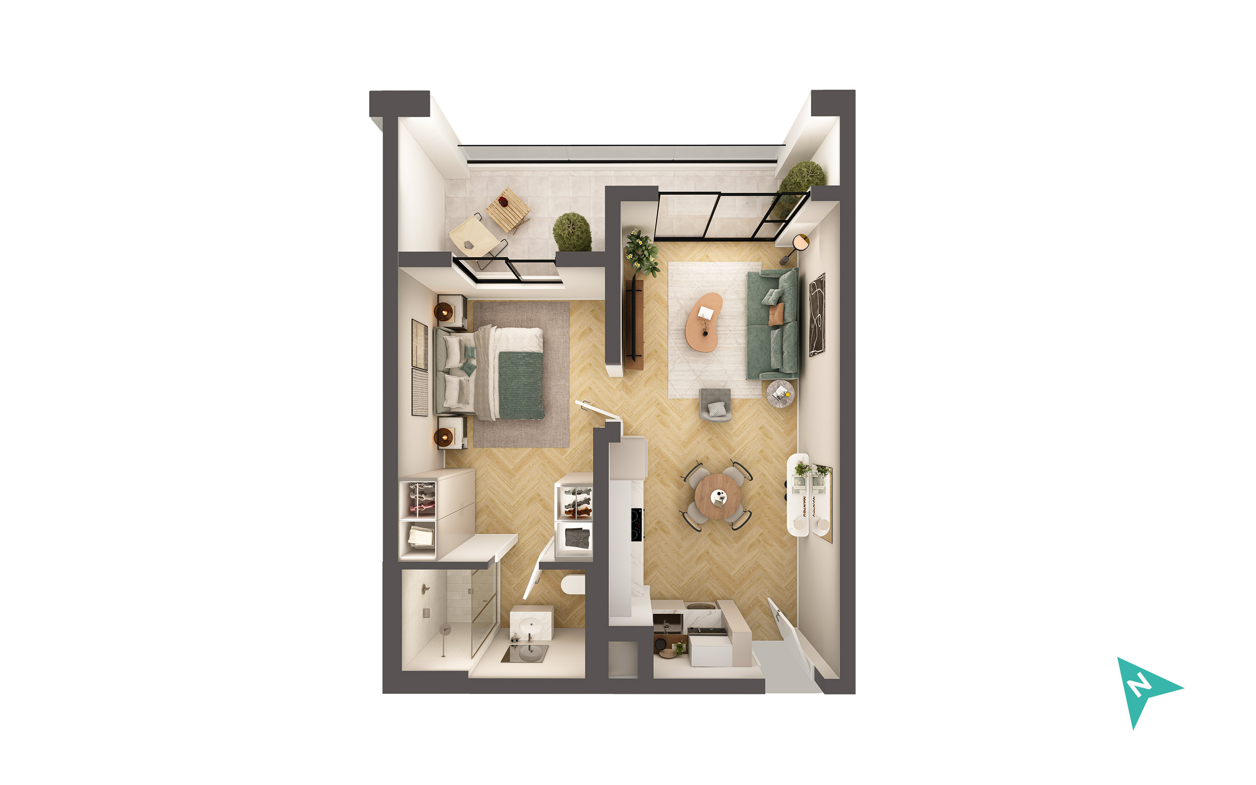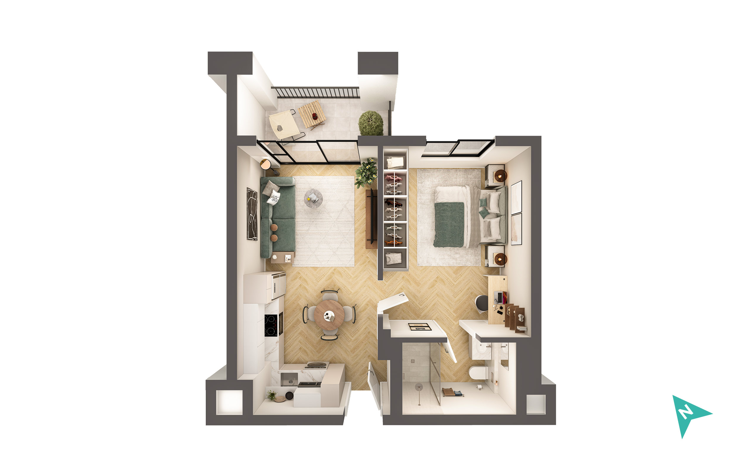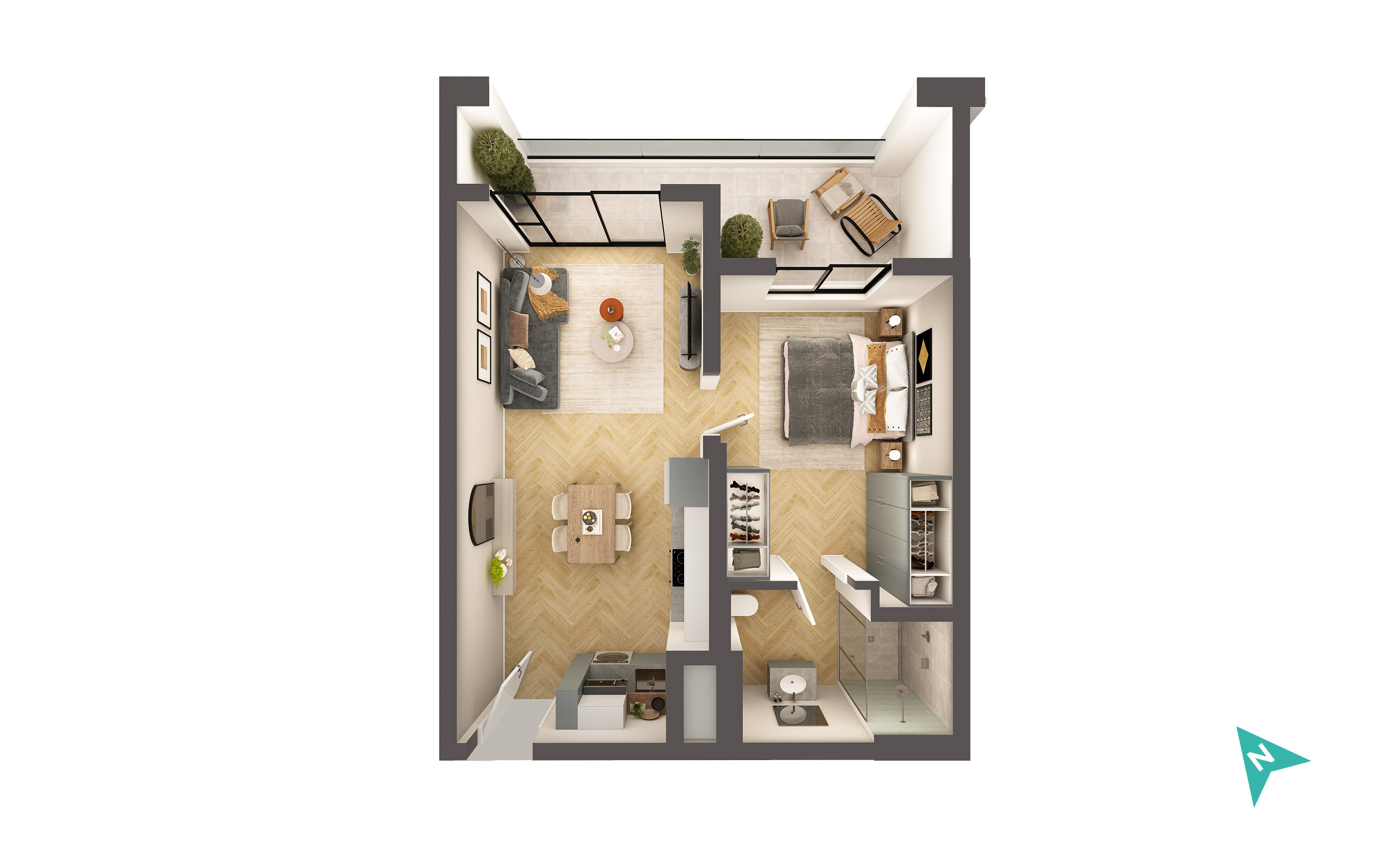 | 407 | SOLD | 1 - Bed | Park | 45 m2 | 6 m2 | 51 m2 | R3 611 |