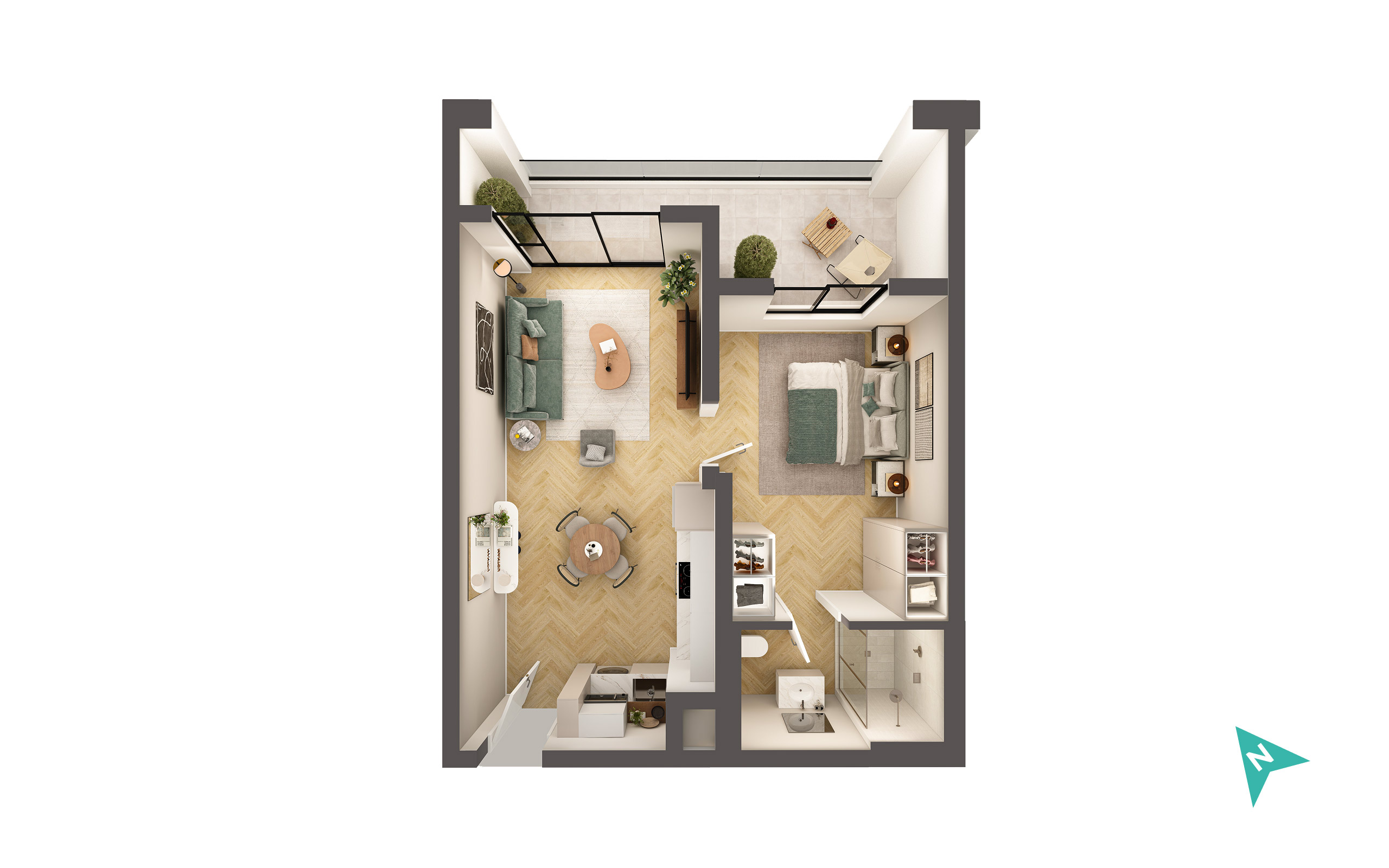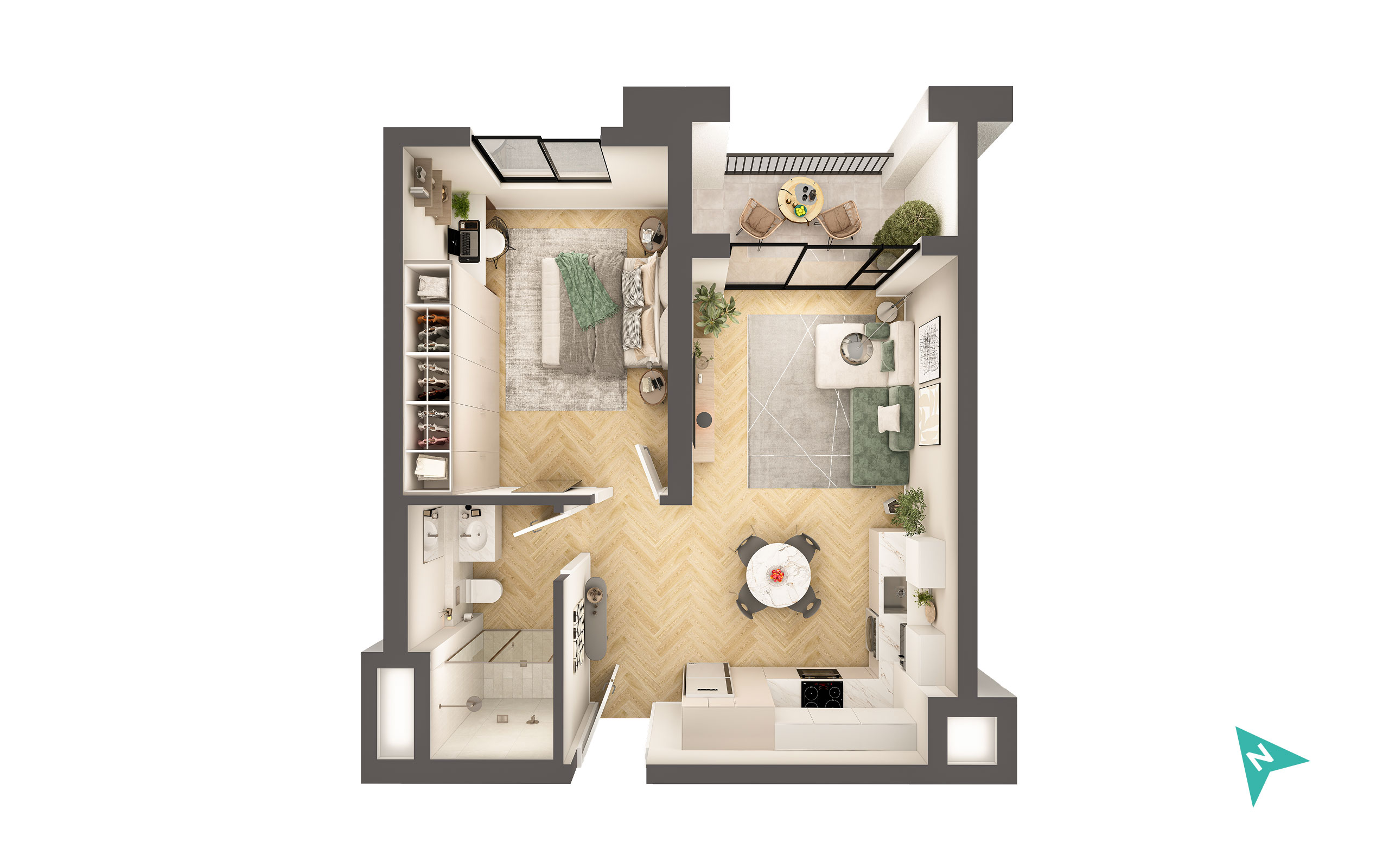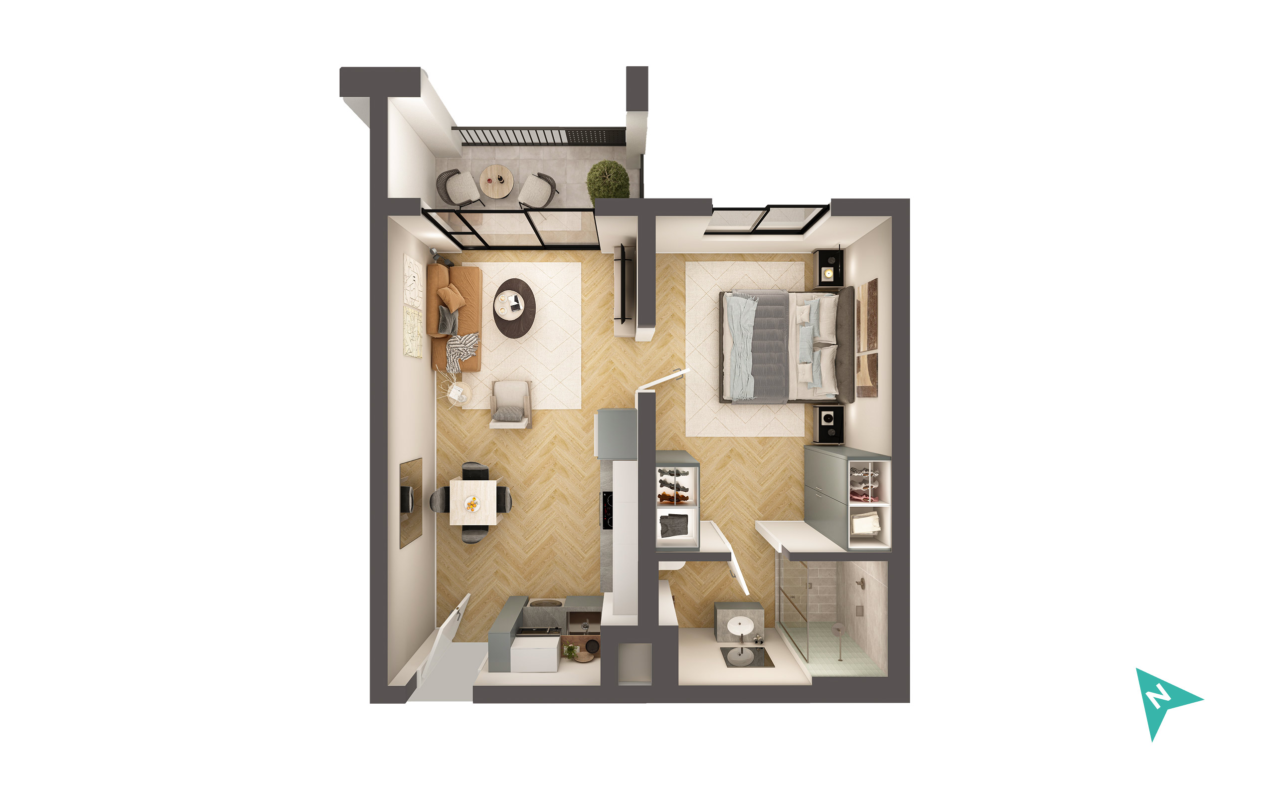 | 407 | SOLD | 1 - Bed | Park | 45 m2 | 6 m2 | 51 m2 | R3 611 |