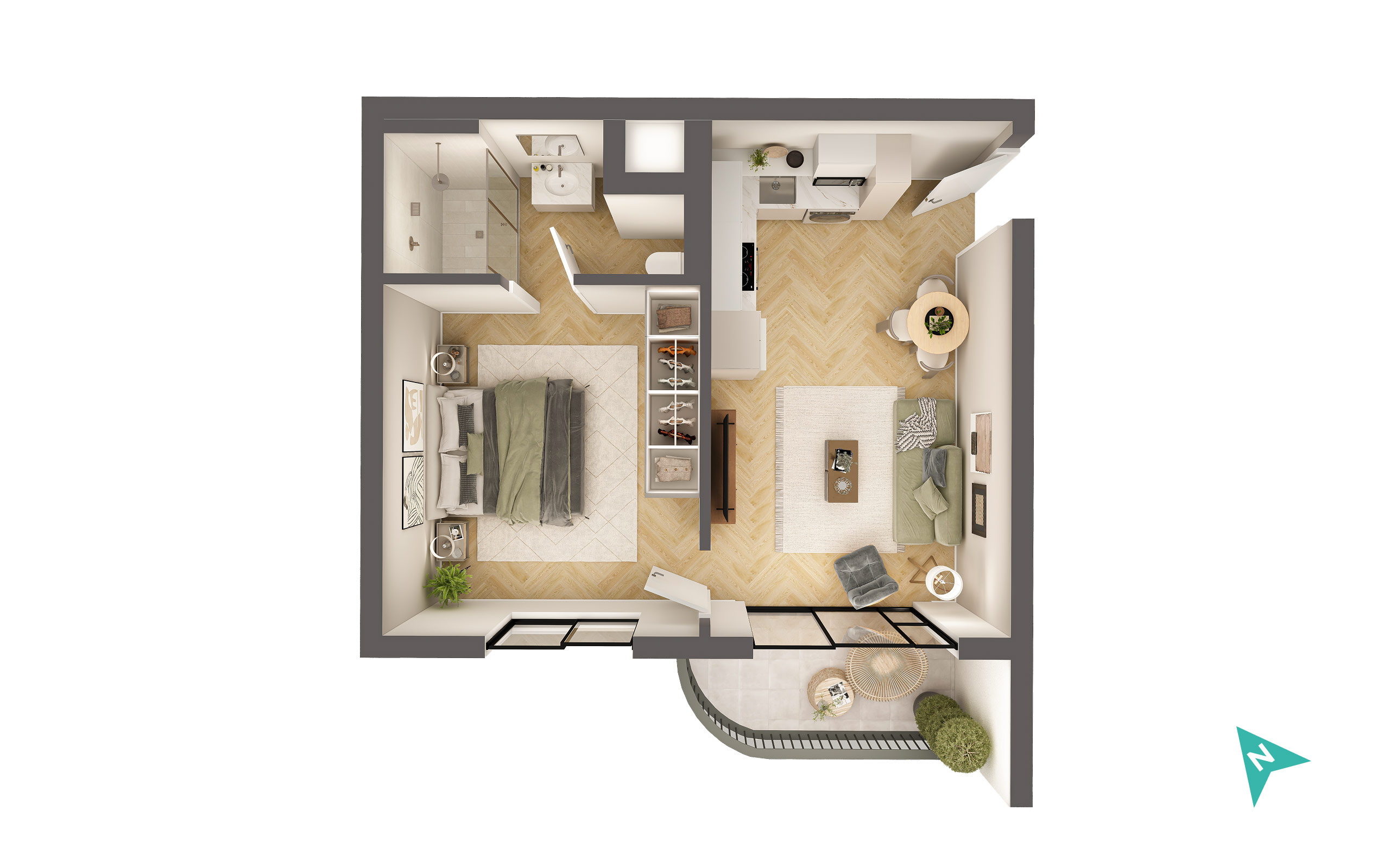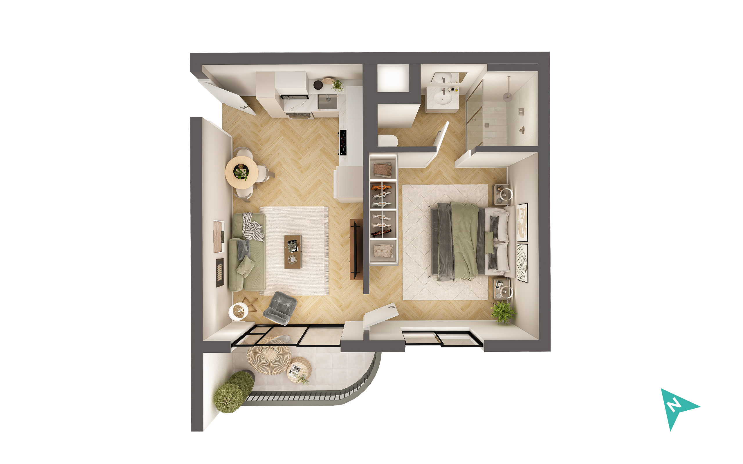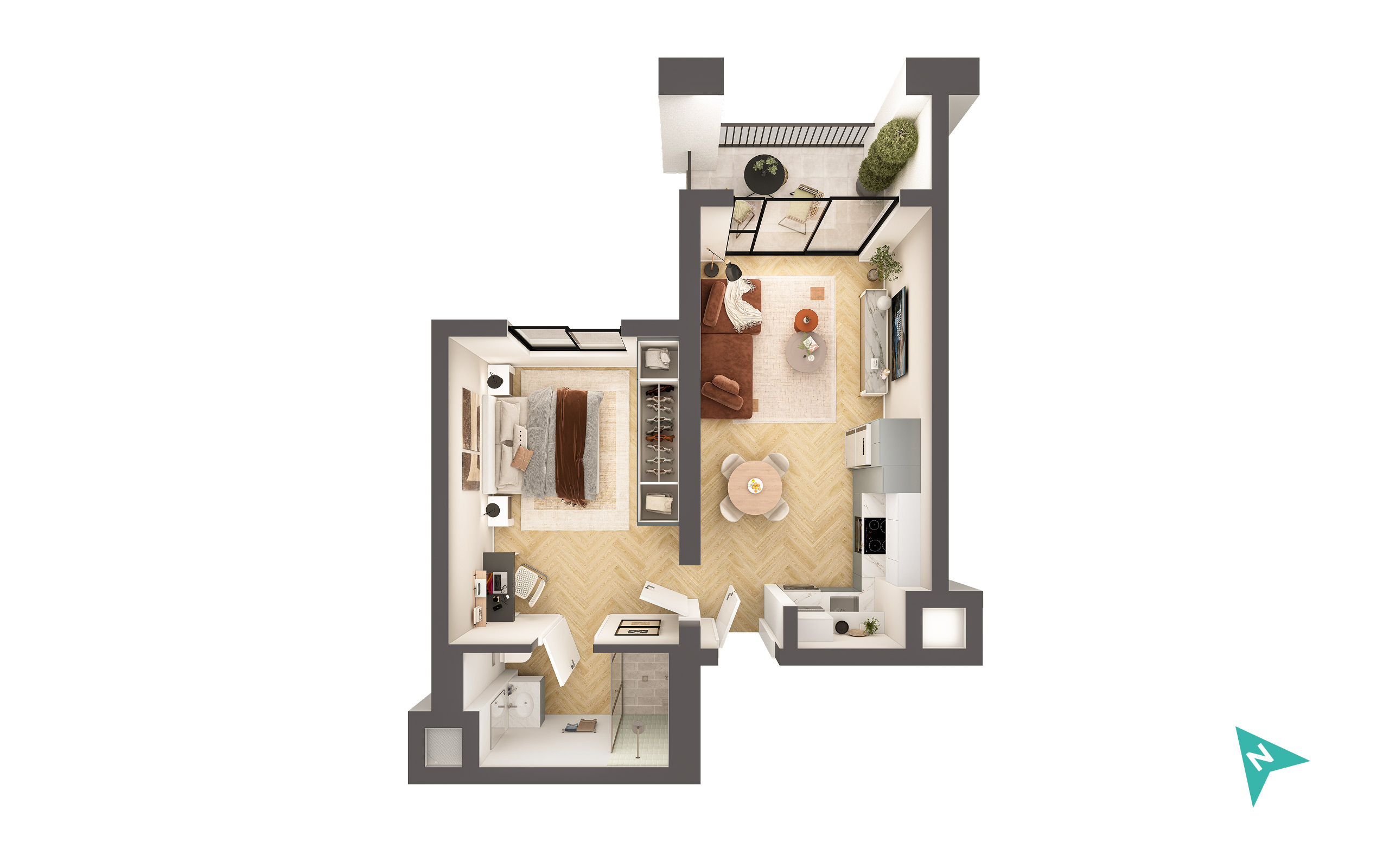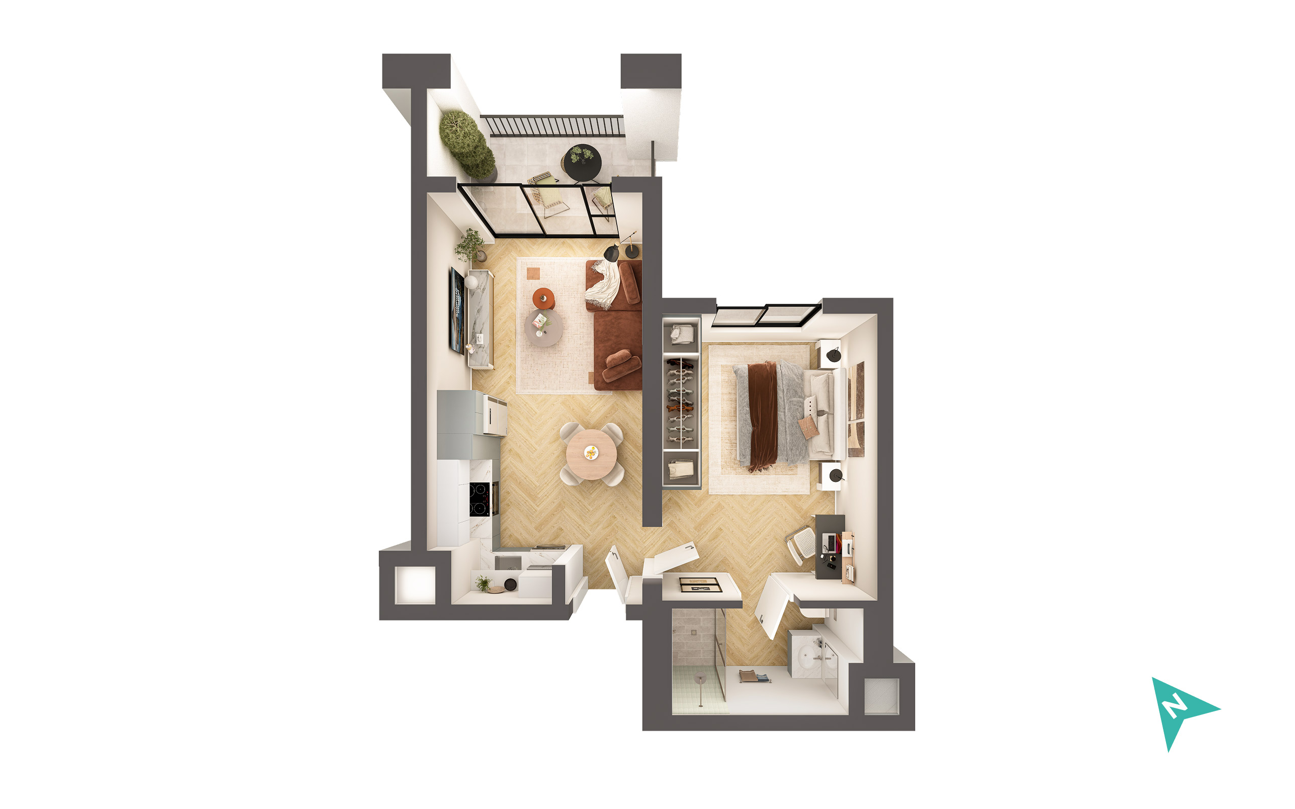 | 407 | SOLD | 1 - Bed | Park | 45 m2 | 6 m2 | 51 m2 | R3 611 |