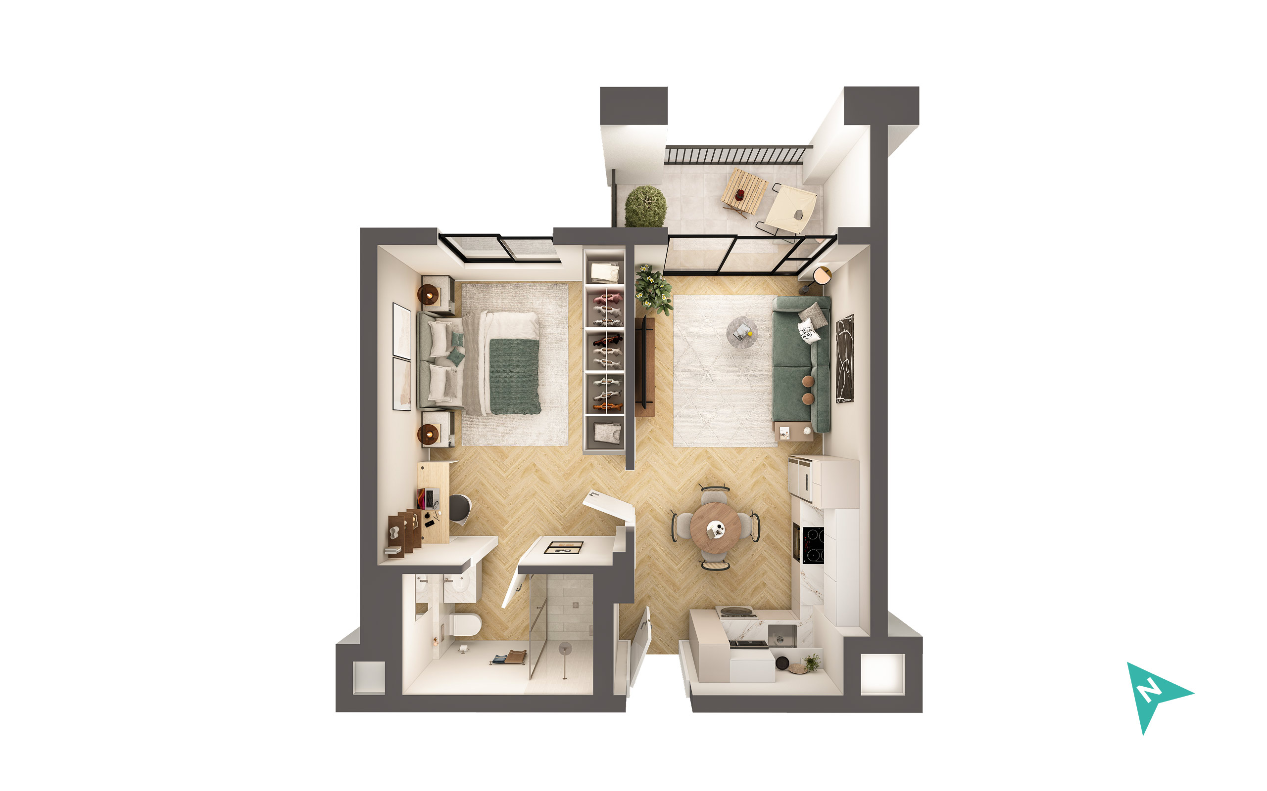 | 305 | SOLD | 1 - Bed | Park | 45 m2 | 6 m2 | 51 m2 | R3 611 |
