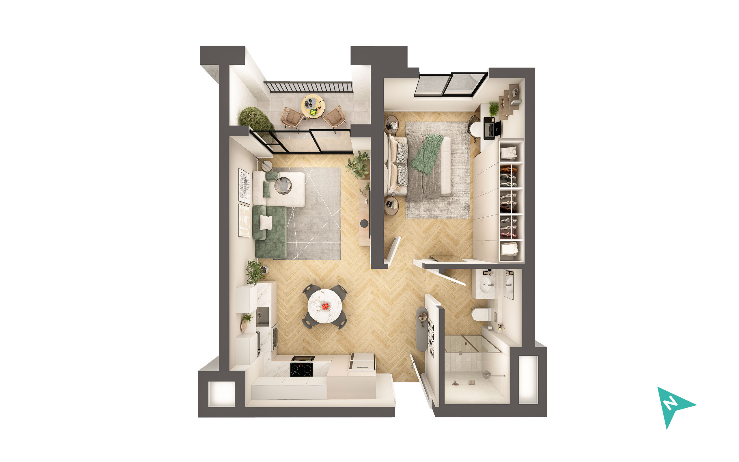 | 512 | SOLD | 1 - Bed | Park | 45 m2 | 6 m2 | 51 m2 | R3 611 |