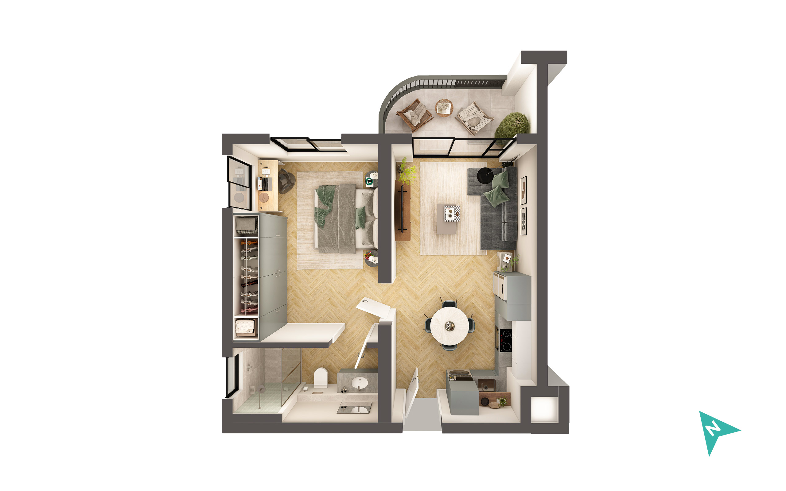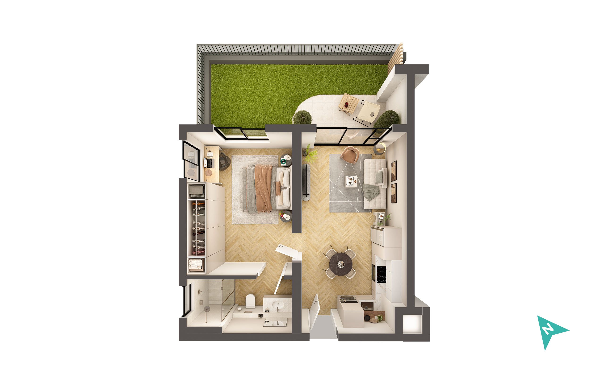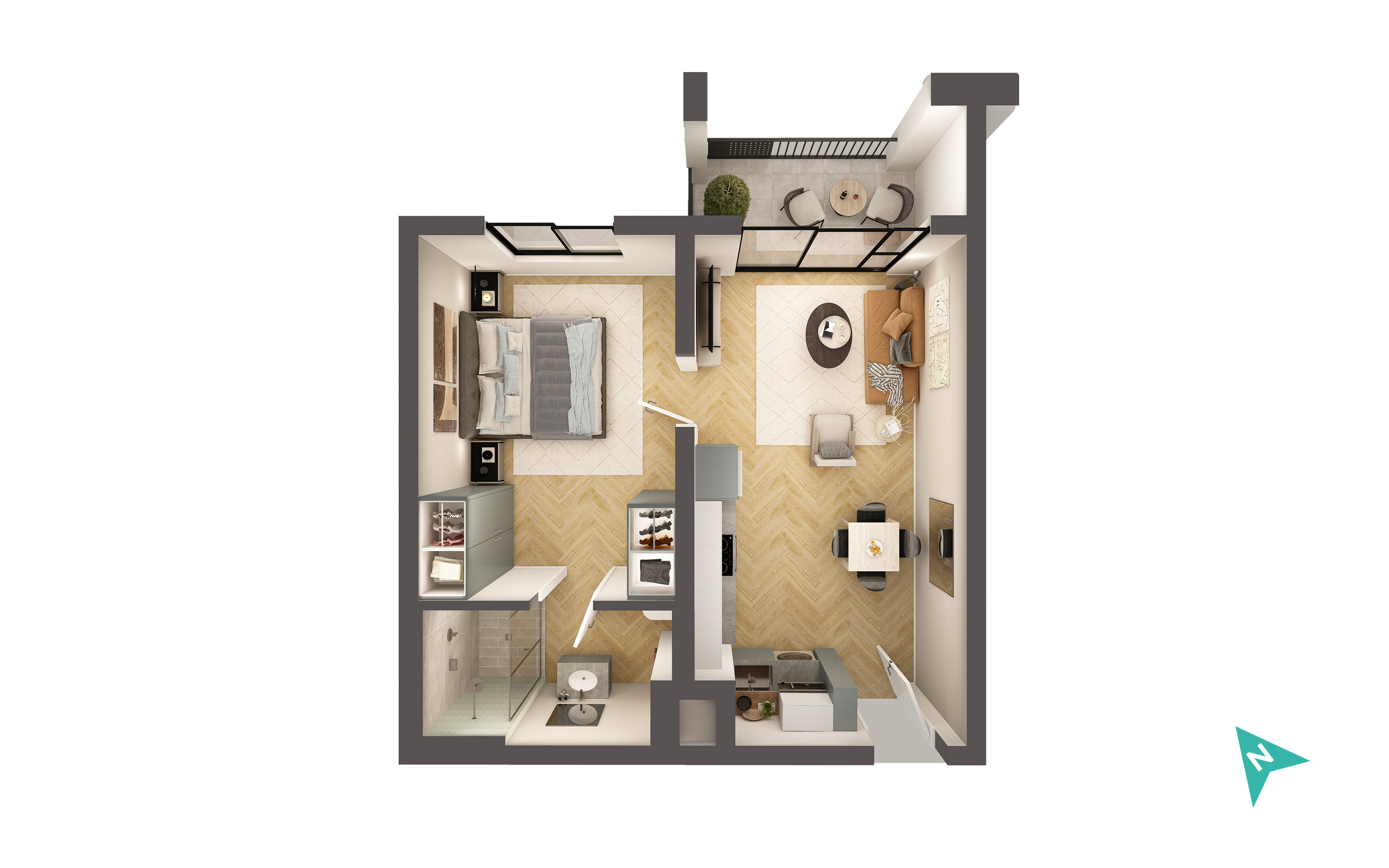 | 505 | SOLD | 1 - Bed | Park | 45 m2 | 6 m2 | 51 m2 | R3 611 |