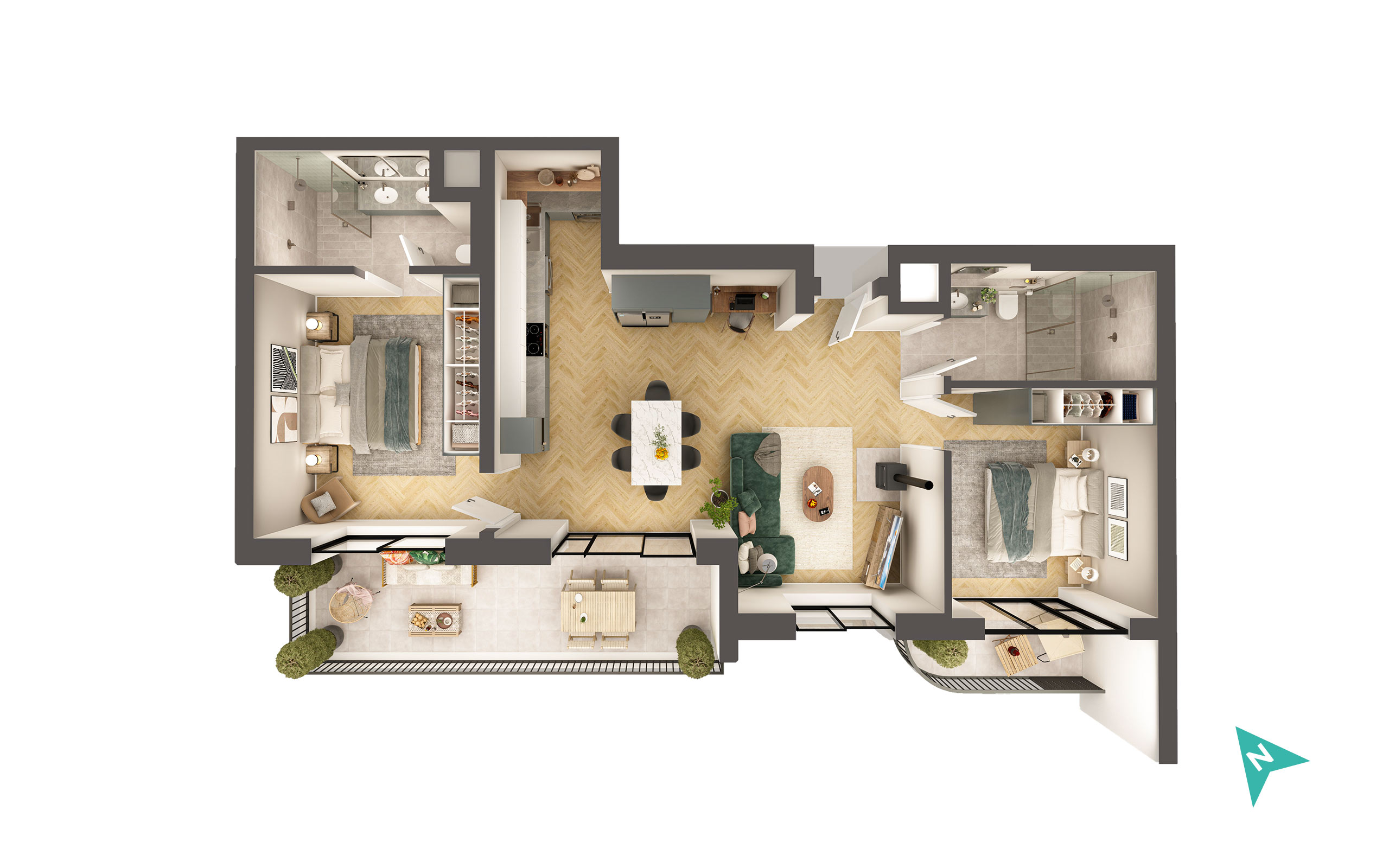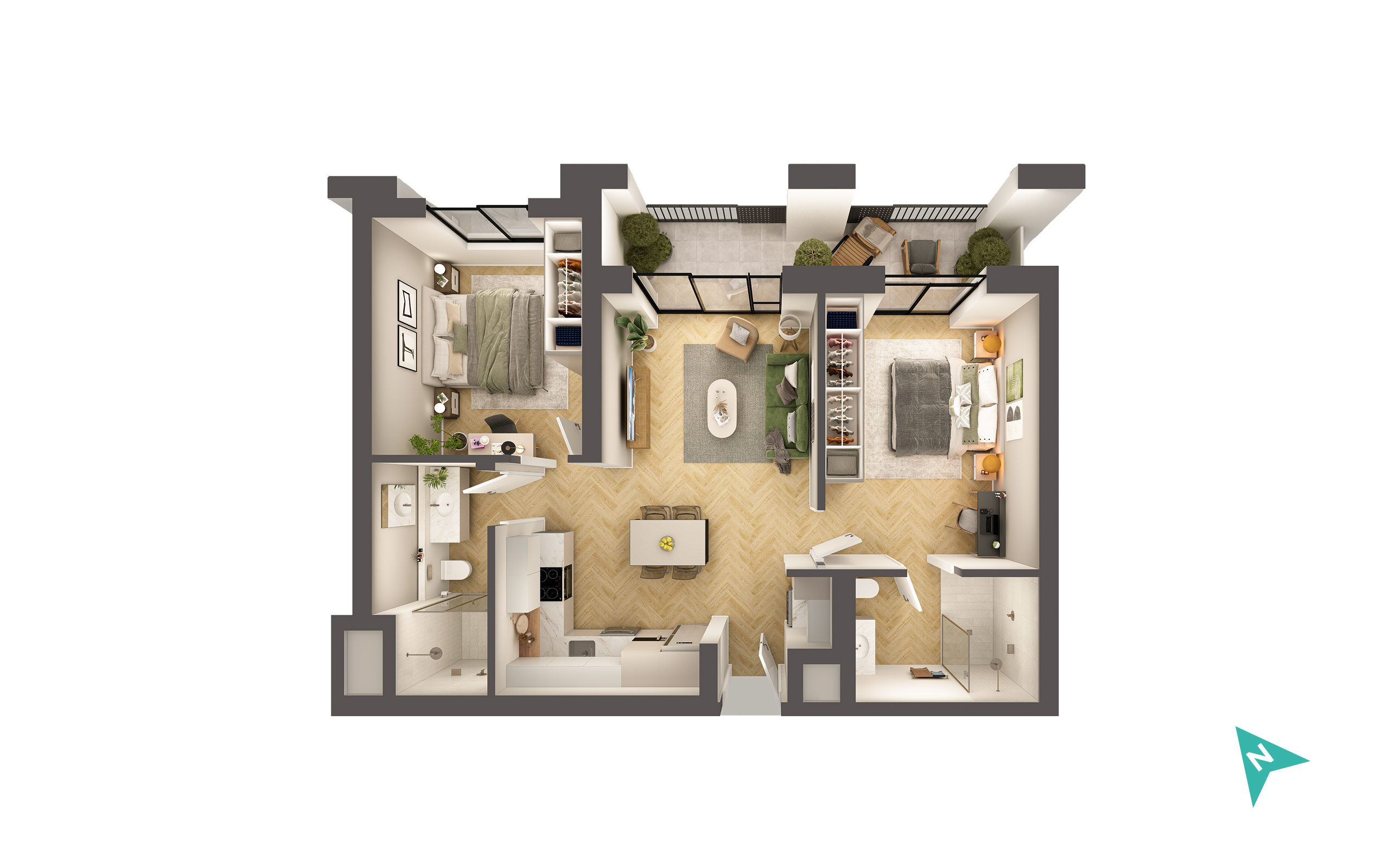 | 306 | SOLD | 2 - Bed | Park | 67 m2 | 6 m2 | 73 m2 | R5 310 |