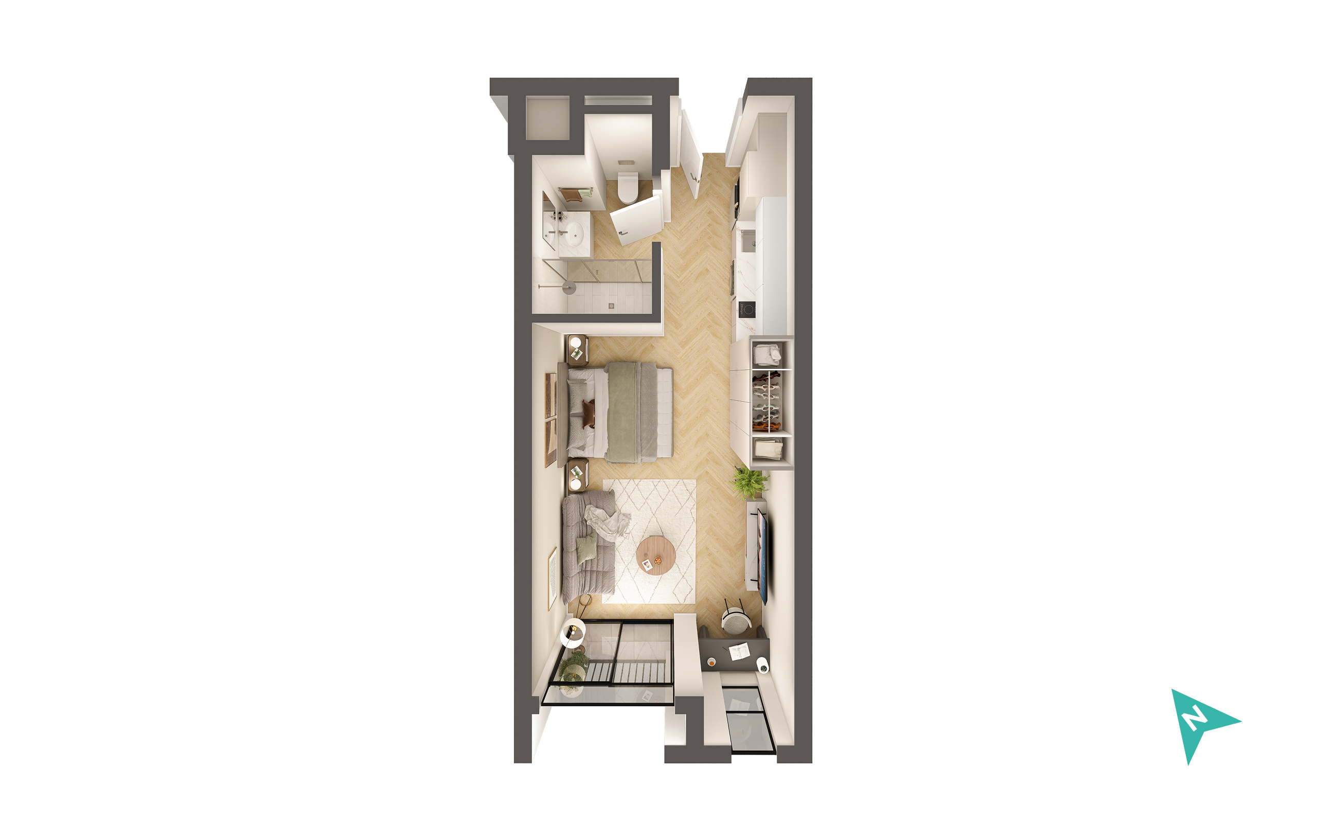 | 501 | SOLD | Studio | Mountain | 32 m2 | 2 m2 | 34 m2 | R2 691 |